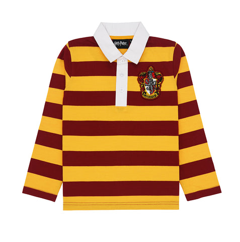 Chivalrous and brave - support your house in style with this custom Gryffindor uniform long sleeve tee. Featuring a detailed embroidered Gryffindor crest, contrast woven collar with button fastening and a tie - this is one to wear for potions class or for trips to the restricted section in the library!